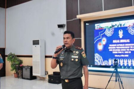 Lampung – Komandan Korem 043/Gatam, Brigjen TNI Rikas Hidayatullah, S.E., M.M., menghadiri acara Halal Bihalal Presiden Republik Indonesia dengan Purnawirawan TNI-Polri secara virtual pada hari Selasa, (6/5/2025) di Ruang A Yani Makorem 043/Gatam, Jl. Teuku Umar, Penengahan, Bandar Lampung.