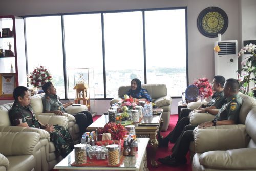 Kunjungan Danrem 043/Gatam beserta rombongan ke kantor Walikota Bandar Lampung yang berada di Jln. Dr. Susilo Sumur Batu Teluk Betung Utara Bandar Lampung, langsung disambut Walikota Bandar Lampung Hj. Eva Dwiana, S.E., dan Dandim 0410/KBL Kolonel Arh Tan Kurniawan, S.A.P., M.I.Pol.