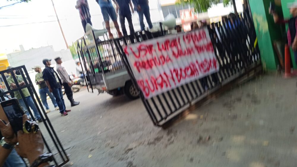 KOTA BEKASI (INFO PUBLIK) – Suasana tegang meliputi kantor Kelurahan Teluk Pucung, Kecamatan Bekasi Utara, sore hari. Puluhan massa yang mengatasnamakan Aliansi Bocah Bekasi menggeruduk bangunan kantor dengan spanduk tebal bertuliskan, “Usir Lurah Ismail, Pemuda Teluk Pucung Bukan Bocah Ledok.”
