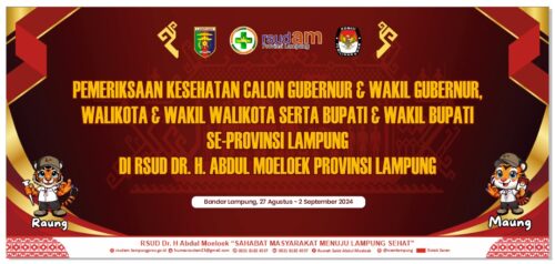 LAMPUNG, IDNPUBLIK.COM – RSUD Dr. H. Abdul Moeloek Provinsi Lampung telah siap untuk melaksanakan pemeriksaan kesehatan jasmani dan rohani bagi pasangan calon (paslon) calon kepala darah (cakada), baik itu calon Gubernur dan Wakil Gubernur, Bupati dan Wakil Bupati, Walikota dan Wakil Walikota di Provinsi Lampung 2024.