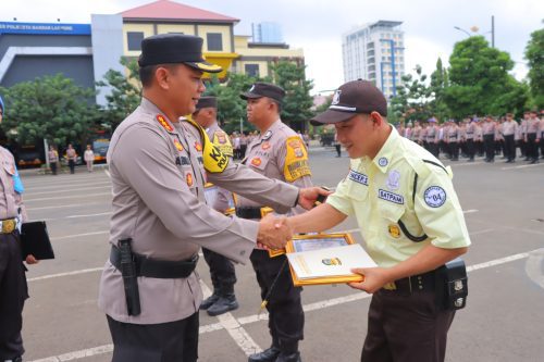 Penyerahan penghargaan berlangsung di Lapangan Mapolresta Bandar Lampung, pada Senin (29/04/2024) pagi.